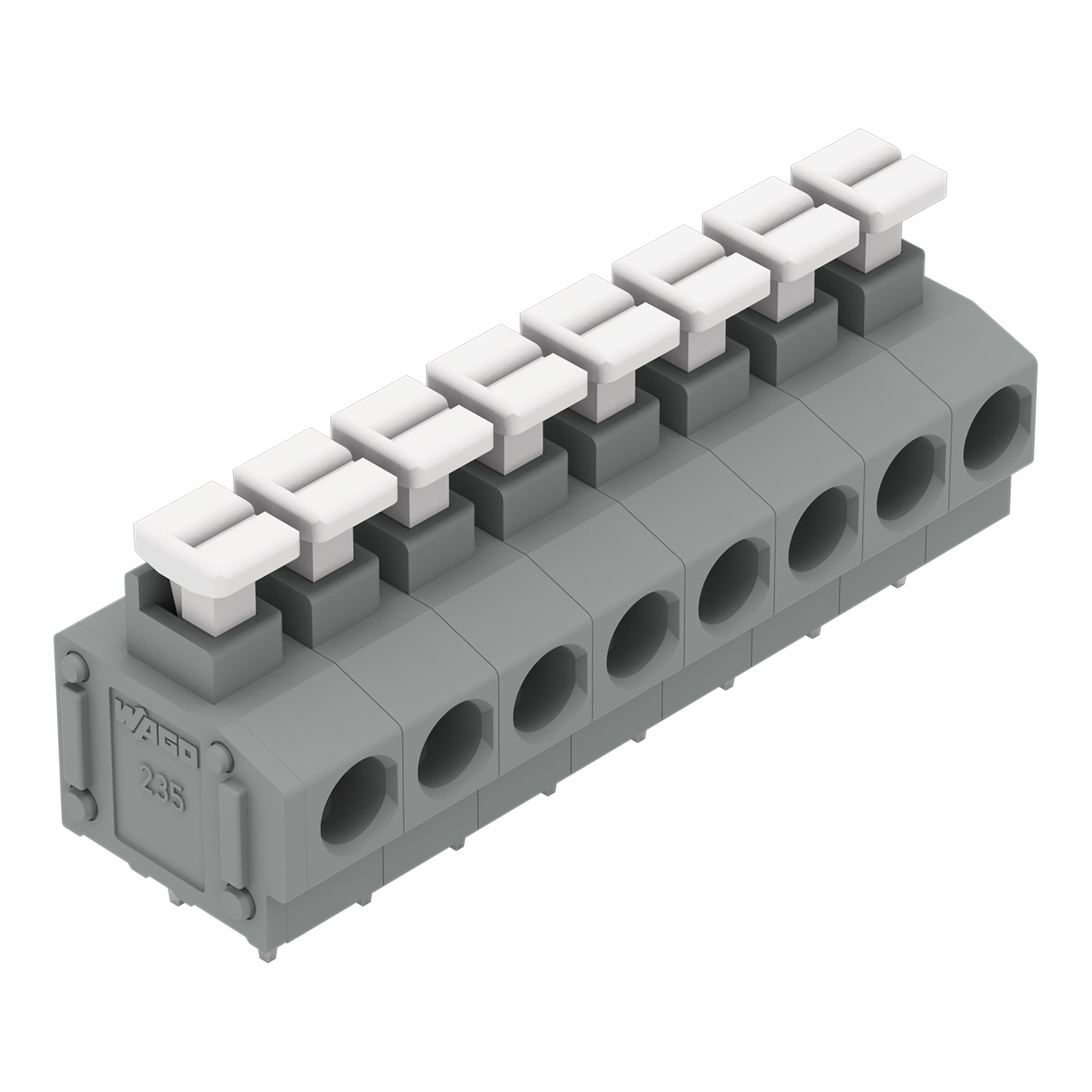 Morsetto per circuito stampato. pulsante. 1,5 mm2. Passo pin 5/5,08 mm. 8 poli. Push-in CAGE CLAMP®. 1,50 mm2. grigio