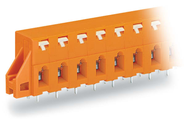 Morsetto per circuito stampato. pulsante. 2,5 mm2. Passo pin 7,62 mm. 10 poli. CAGE CLAMP®. collare di fissaggio. 2,50 mm2. arancione