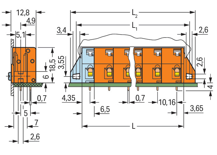 WAGO ELETTRONICA - Morsetto per circuito stampato.pulsante.2,5 mm².arancione 741-625