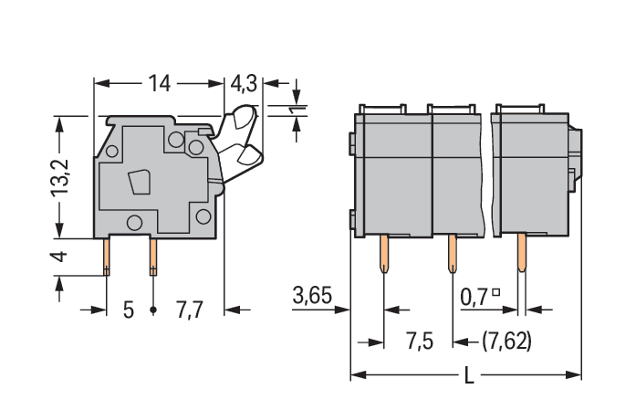 WAGO ELETTRONICA - Morsetto per circuito stampato.pulsante.2,5 mm².grigio 255-508