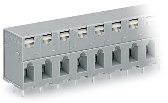 Morsetto per circuito stampato. pulsante. 2,5 mm2. Passo pin 7,5 mm. 10 poli. CAGE CLAMP®. 2,50 mm2. grigio
