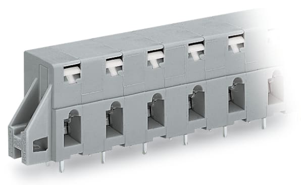 Morsetto per circuito stampato. pulsante. 2,5 mm2. Passo pin 10 mm. 3 poli. CAGE CLAMP®. collare di fissaggio. 2,50 mm2. grigio