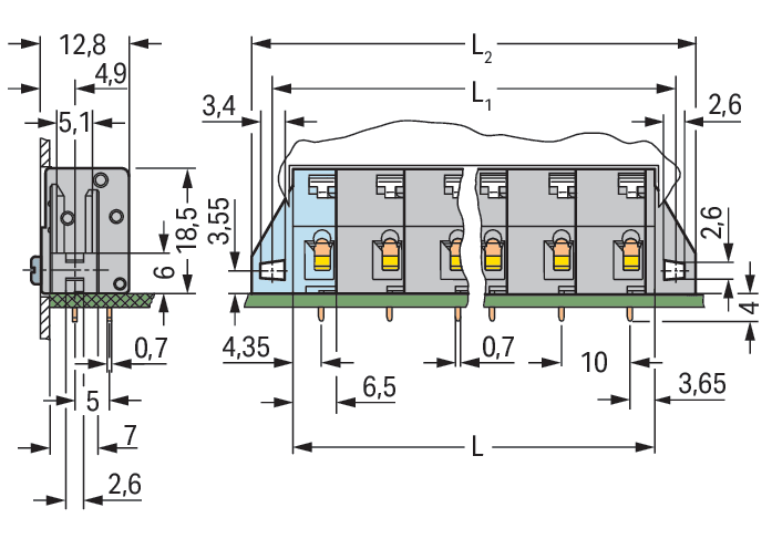 WAGO ELETTRONICA - Morsetto per circuito stampato.pulsante.2,5 mm².grigio 741-523