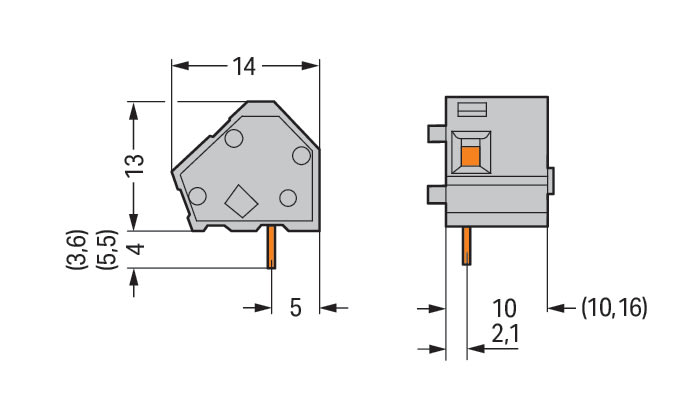 WAGO ELETTRONICA - Morsetto per circuito stampato sovrapponibile.2,5 mm².Passo pin 10/10,16 mm.arancione 236-736