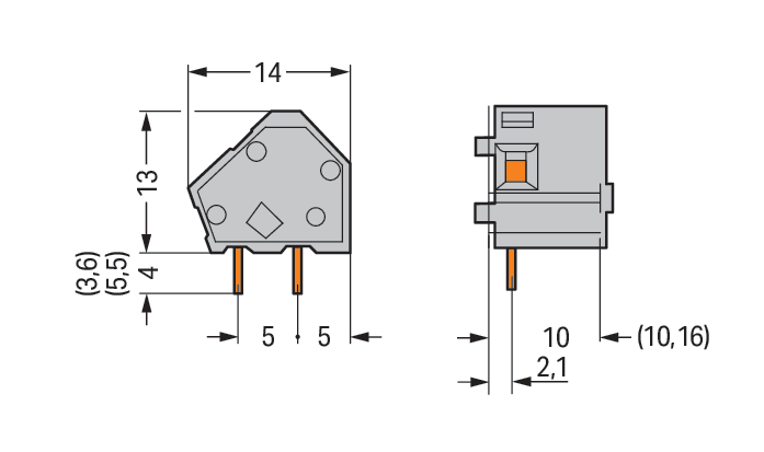 WAGO ELETTRONICA - Morsetto per circuito stampato sovrapponibile.2,5 mm².Passo pin 10/10,16 mm.arancione 236-766/332-000