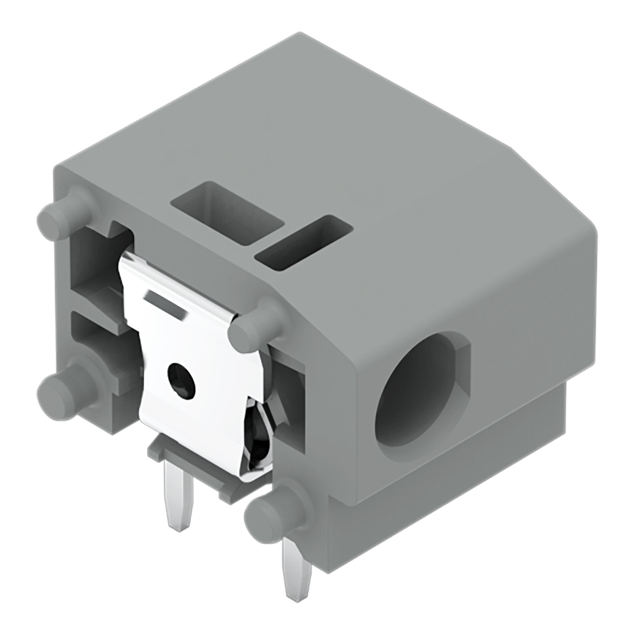 Morsetto per circuito stampato sovrapponibile. 2,5 mm2. Passo pin 10/10,16 mm. 1 polo. PUSH WIRE®. con presa per test. 2,50 mm2. grigio