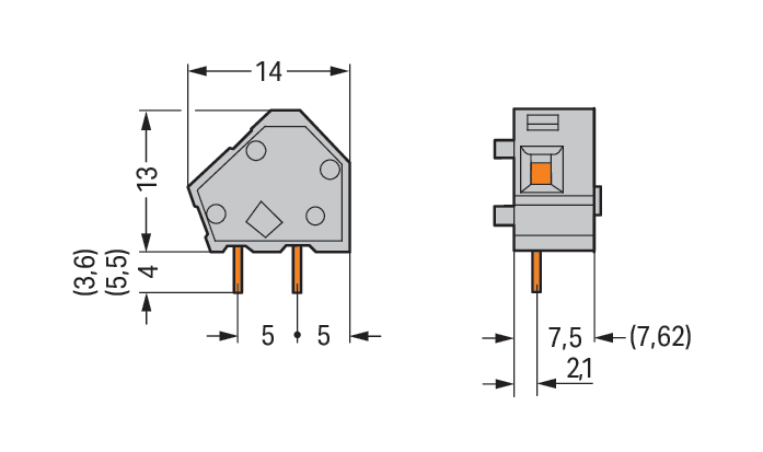WAGO ELETTRONICA - Morsetto per circuito stampato sovrapponibile.2,5 mm².Passo pin 7,5/7,62 mm.grigio 236-501