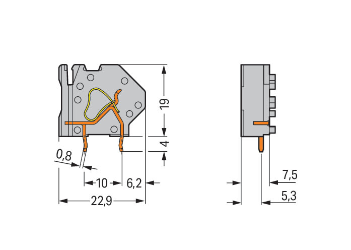 WAGO ELETTRONICA - Morsetto per circuito stampato sovrapponibile.4 mm².Passo pin 7,5 mm.grigio chiaro 745-813