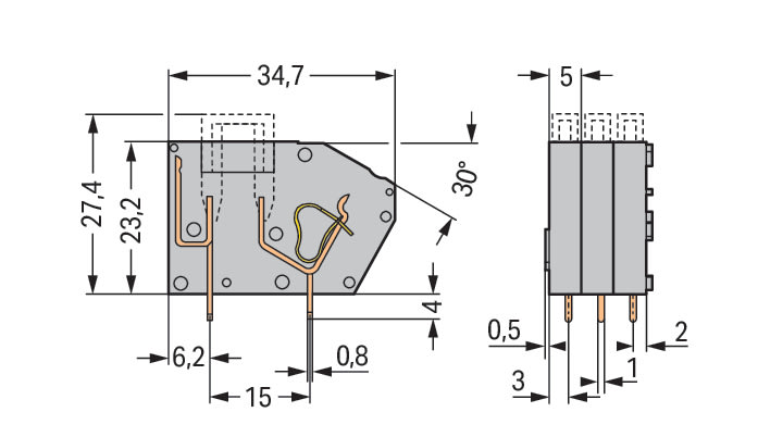 WAGO ELETTRONICA - Morsetto per circuito stampato sovrapponibile.con supporto per fusibile.2,5 mm².grigio