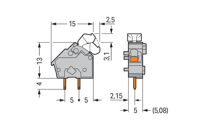 WAGO ELETTRONICA - Morsetto per circuito stampato sovrapponibile.pulsante.2,5 mm².arancione 256-846