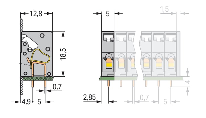 WAGO ELETTRONICA - Morsetto per circuito stampato sovrapponibile.pulsante.2,5 mm².grigio