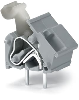 Morsetto per circuito stampato sovrapponibile. pulsante. 2,5 mm2. Passo pin 10/10,16 mm. 1 polo. CAGE CLAMP®. collegamento a ponte opzionale. 2,50 mm2. grigio