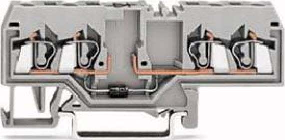 Morsetto per componente. 4 conduttori. con diodo 1N4007. anodo, a sinistra. per guida DIN 35 x 15 e 35 x 7,5. 2,5 mm2. CAGE CLAMP®. 2,50 mm2. grigio