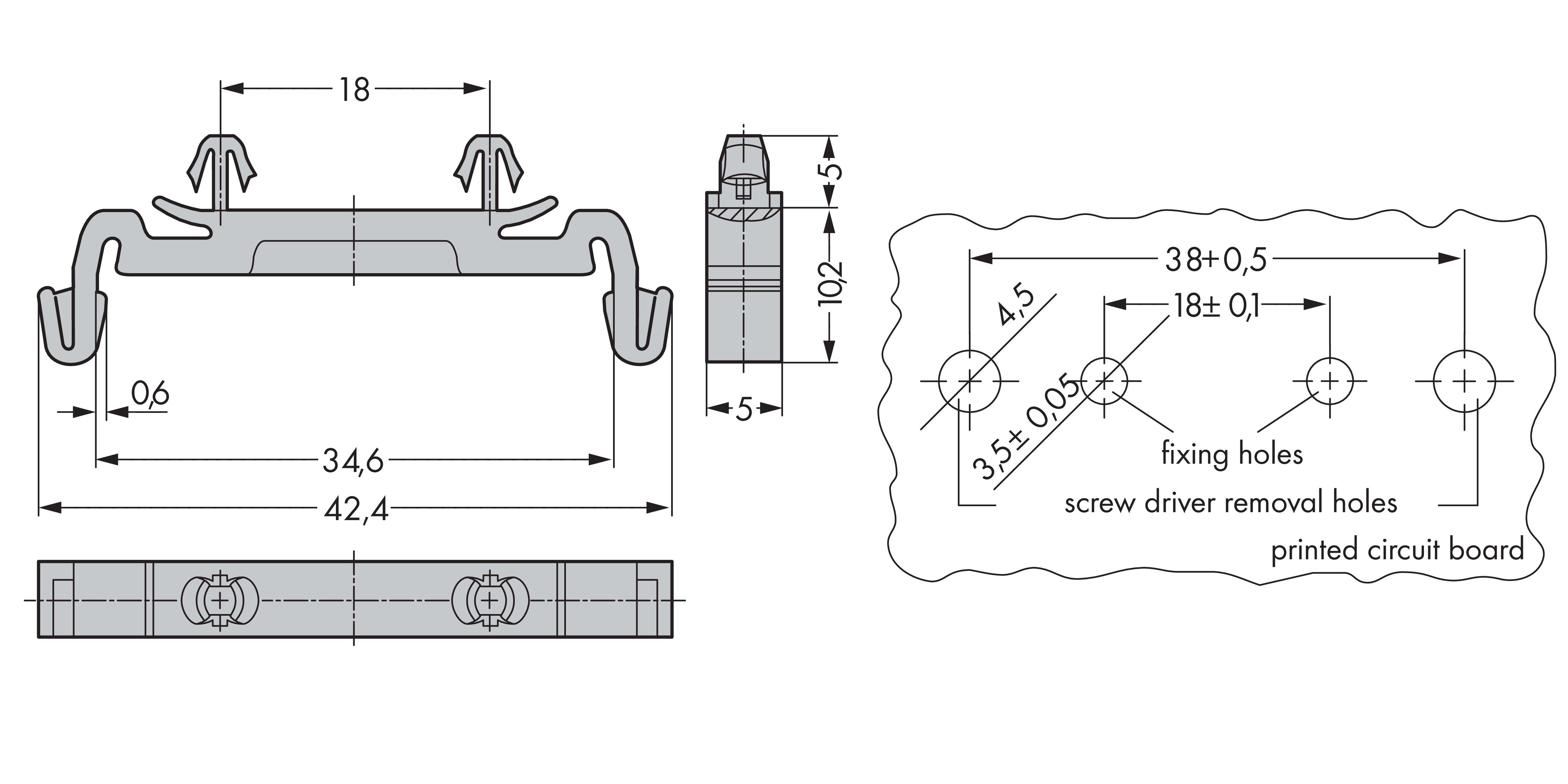 WAGO ELETTRONICA - Piede di montaggio.possono essere montati su morsetti con flange di fissaggio.grigio