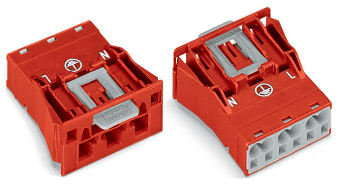 Spina con innesto a scatto. 3 poli. Cod. P. 4,00 mm2. rosso