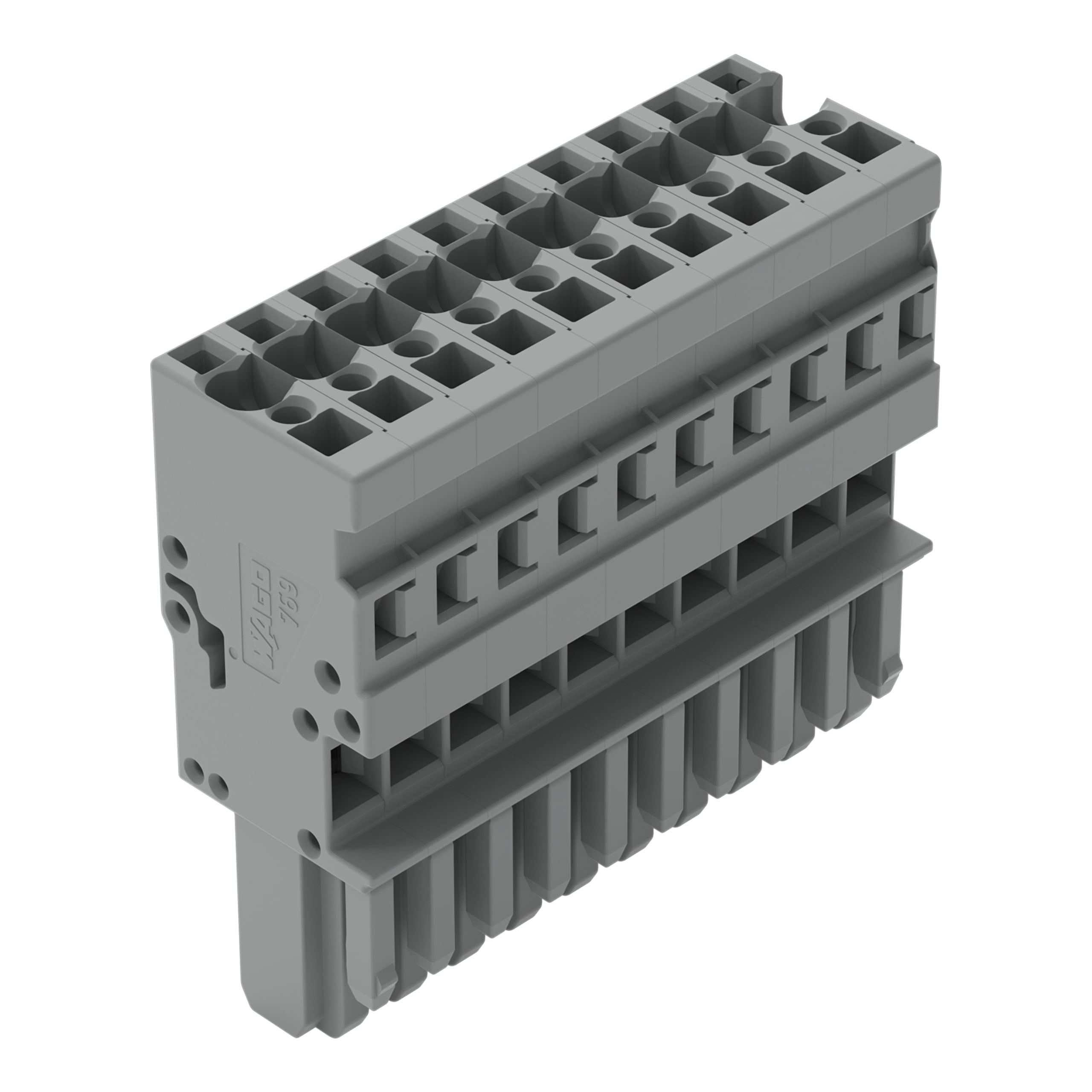 Spina femmina per 1 conduttore. CAGE CLAMP®. 4 mm2. Passo pin 5 mm. 10 poli. Pin di codifica. 4,00 mm2. grigio