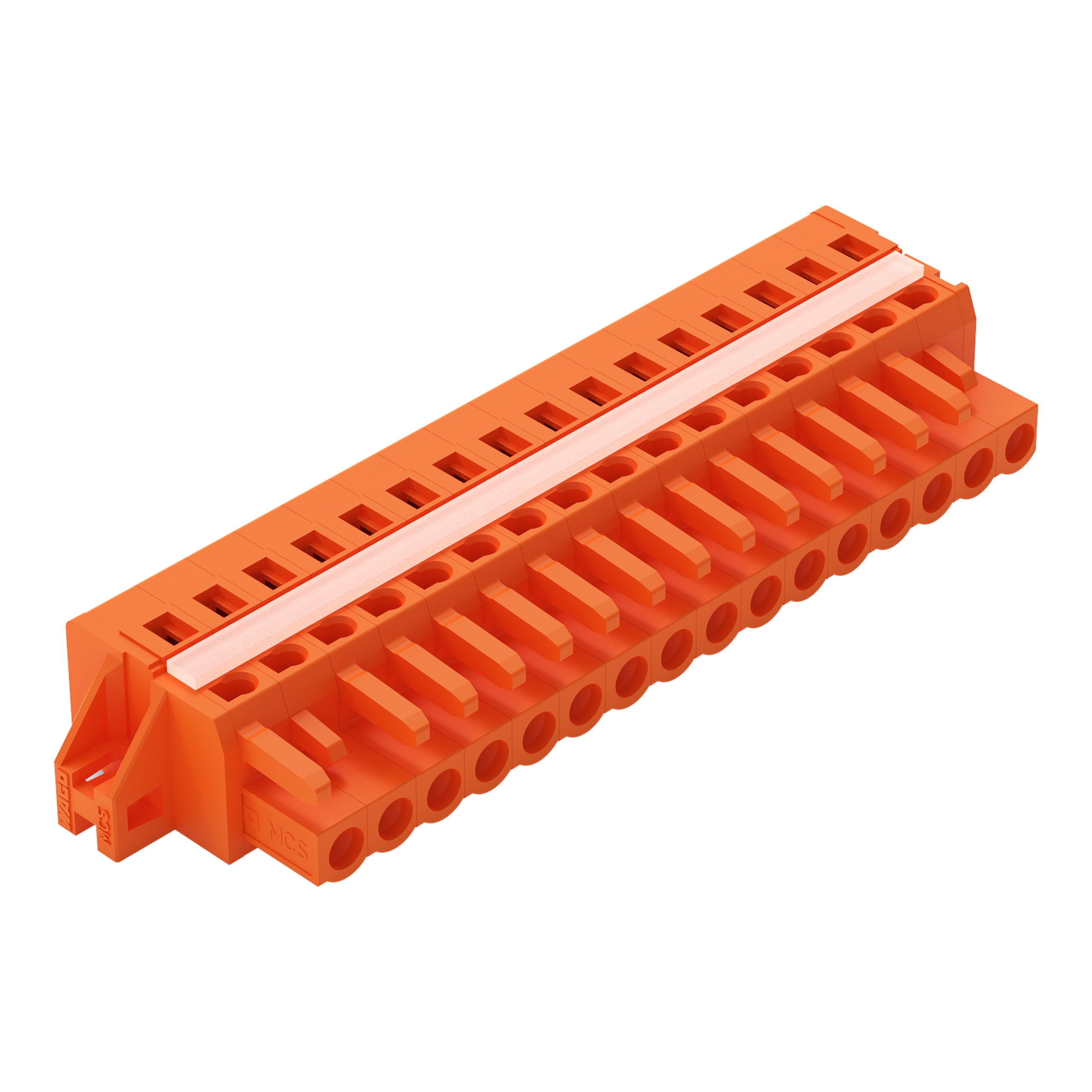 Spina femmina per 1 conduttore. CAGE CLAMP®. 2,5 mm2. Passo pin 5,08 mm. 16 poli. collare di fissaggio. 2,50 mm2. arancione