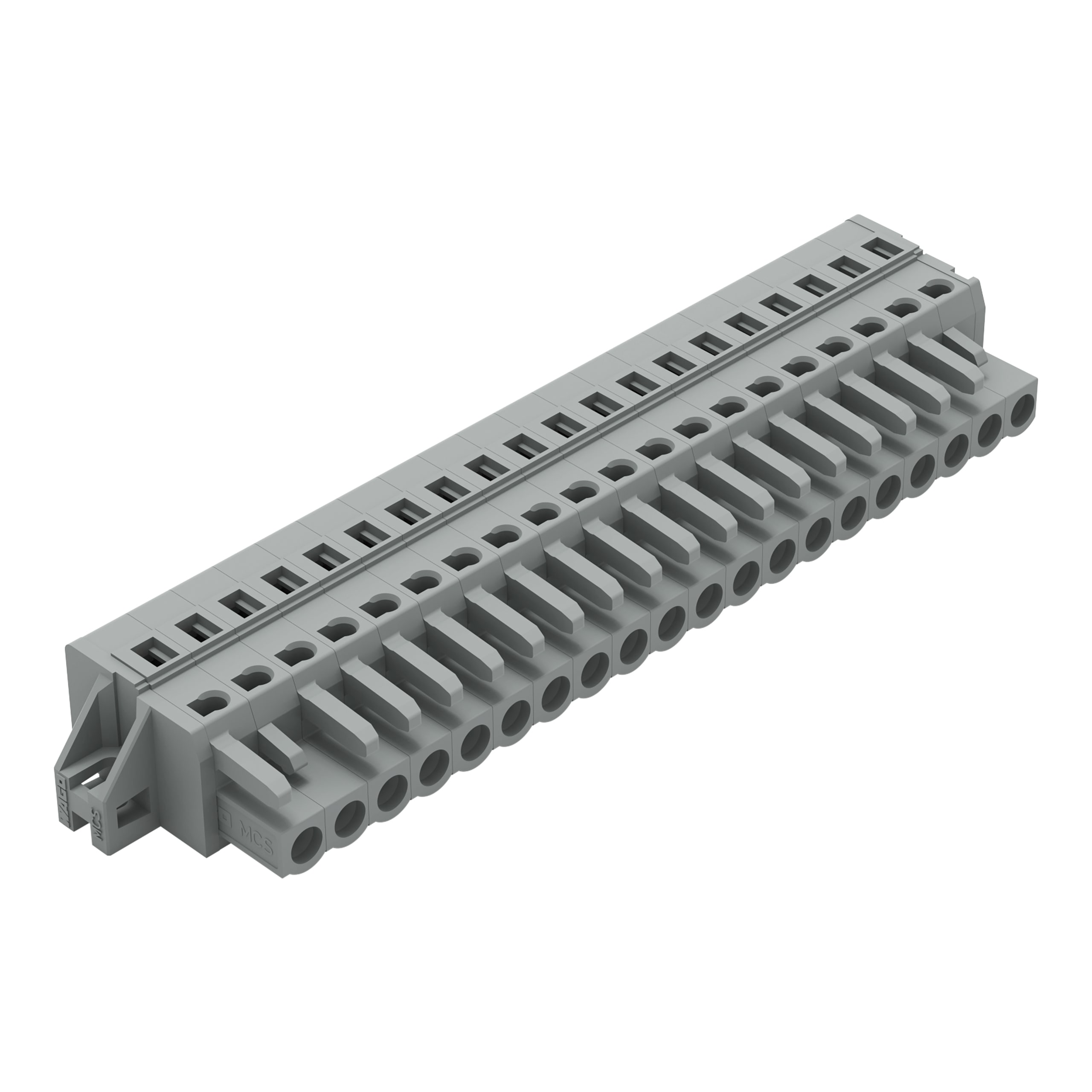 Spina femmina per 1 conduttore. CAGE CLAMP®. 2,5 mm2. Passo pin 5 mm. 20 poli. collare di fissaggio. 2,50 mm2. grigio
