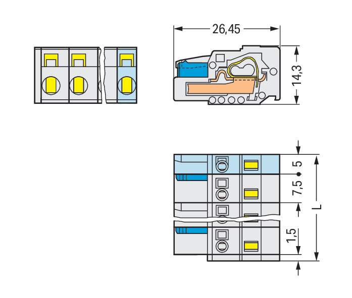 Spina femmina per 1 conduttore. CAGE CLAMP®. 2,5 mm2. Passo pin 7,5 mm. 12 poli. Protetto al 100% contro l'inversione di polarità. 2,50 mm2. grigio chiaro