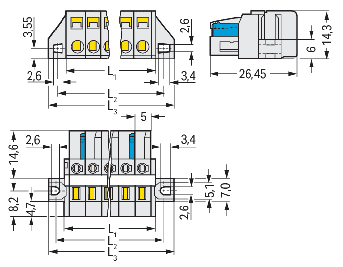 Spina femmina per 1 conduttore. CAGE CLAMP®. 2,5 mm2. Passo pin 5 mm. 10 poli. Protetto al 100% contro l'inversione di polarità. collare di fissaggio. 2,50 mm2. grigio chiaro