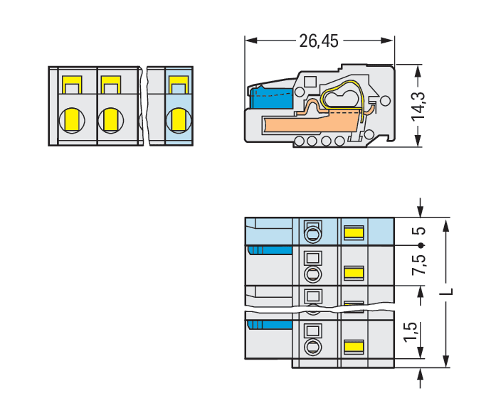 Spina femmina per 1 conduttore. CAGE CLAMP®. 2,5 mm2. Passo pin 7,5 mm. 8 poli. Protetto al 100% contro l'inversione di polarità. 2,50 mm2. grigio chiaro
