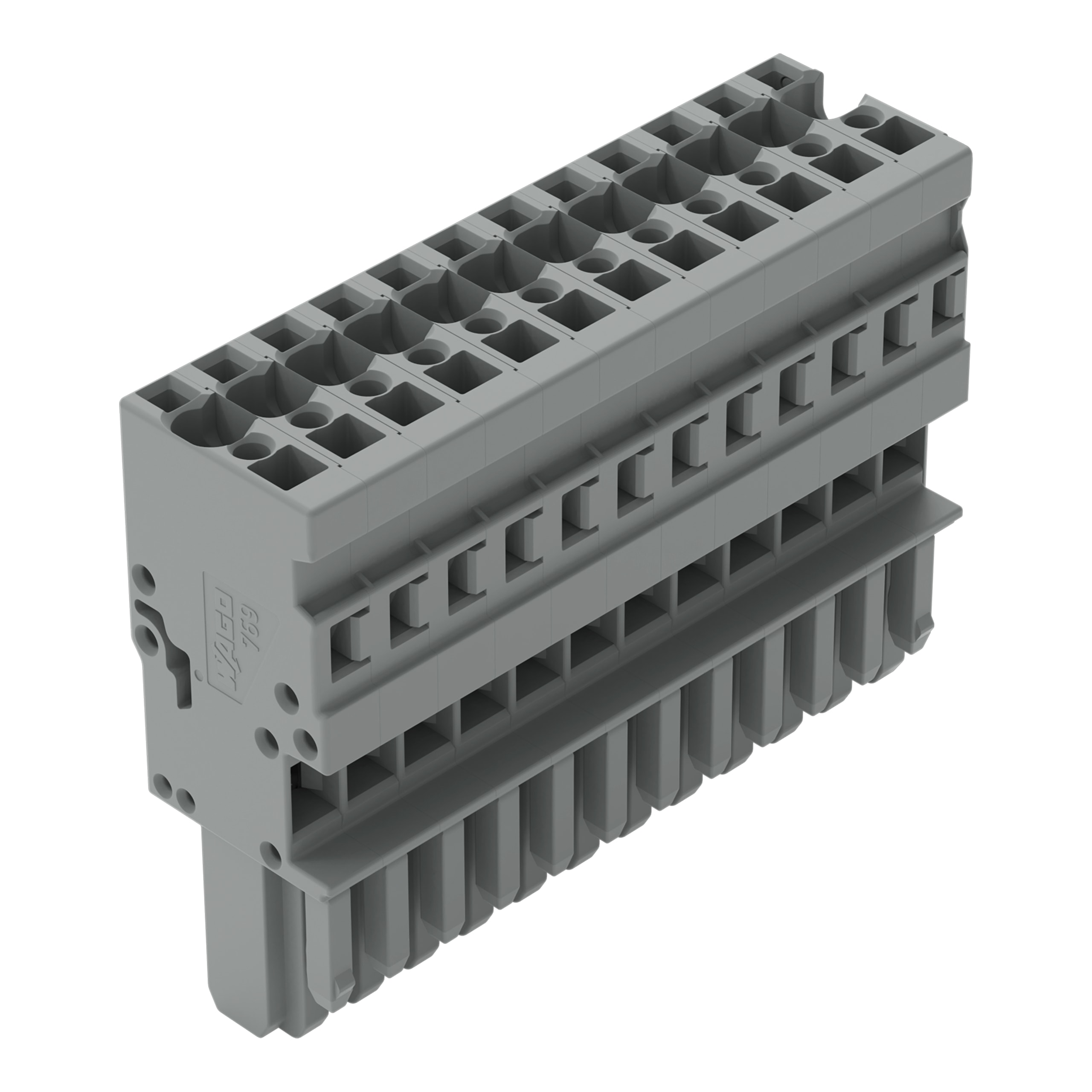 Spina femmina per 1 conduttore. CAGE CLAMP®. 4 mm2. Passo pin 5 mm. 12 poli. Pin di codifica. 4,00 mm2. grigio