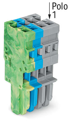 Spina femmina per 1 conduttore. CAGE CLAMP®. 4 mm2. Passo pin 5 mm. 4 poli. Pin di codifica. 4,00 mm2. grigio, blu, giallo-verde