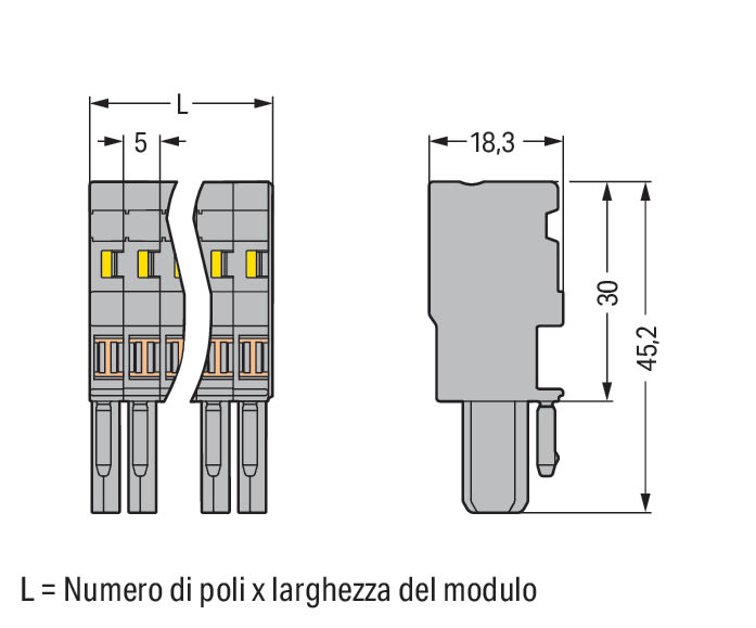 Spina femmina per 1 conduttore. CAGE CLAMP®. 4 mm2. Passo pin 5 mm. 1 polo. Pin di codifica. 4,00 mm2. verde-giallo