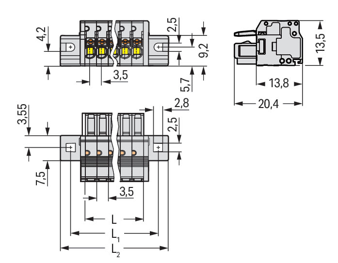 Spina femmina per 1 conduttore. pulsante. Push-in CAGE CLAMP®. 1,5 mm2. Passo pin 3,5 mm. 5 poli. Protetto al 100% contro l'inversione di polarità. collare di fissaggio. 1,50 mm2. grigio chiaro