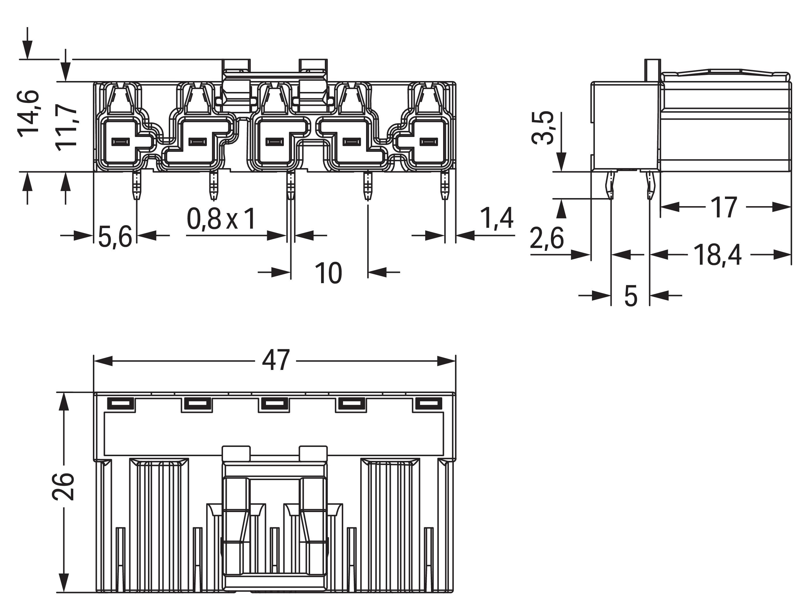 Spina per circuiti stampati. angolato. 5 poli. Cod. B. verde chiaro