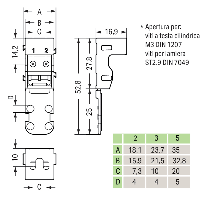 Supporto di montaggio. per morsetti per 3 conduttori. Serie 221 - 4 mm2. per montaggio a vite. nero