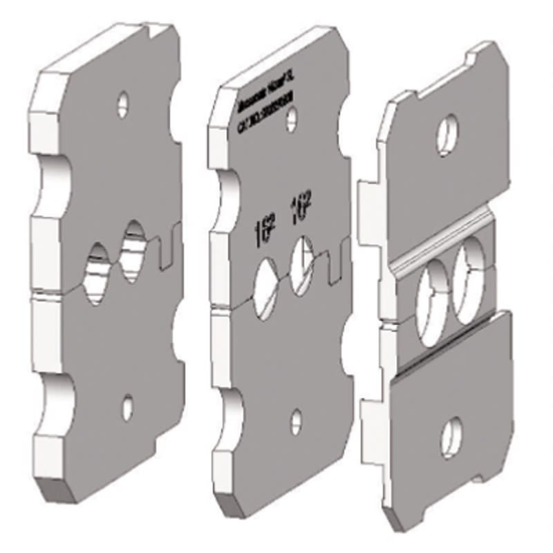 Diversi inserti per l\'utensile spellafili. Gli inserti offrono all\'utensile un elevato grado di affidabilità e sono adattati in modo ottimale al tipo di cavo.