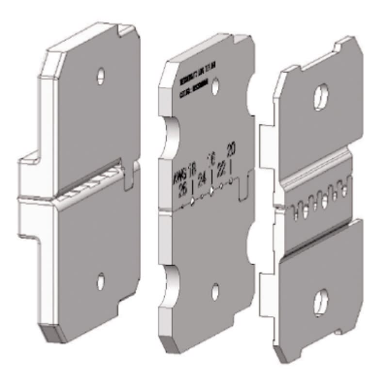 Diversi inserti per l\'utensile spellafili. Gli inserti offrono all\'utensile un elevato grado di affidabilità e sono adattati in modo ottimale al tipo di cavo.