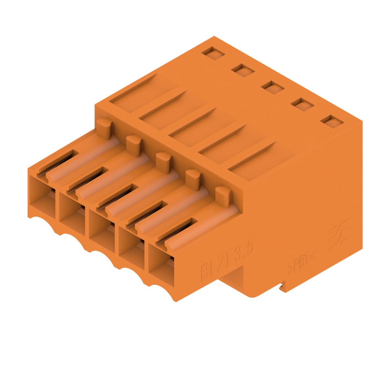 WEIDMULLER - Connettori per circuito stampato, 160V, 14.5A, Passo 3.50mm, 1.5mm², 5 poli, Molla autobloccante, BLZF 3.50/05/180 SN OR BX. 1690220000
