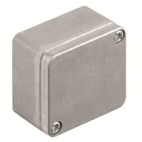 Custodia in metallo per l\'utilizzo in applicazioni industriali. I fori per il montaggio sono posti all\'esterno dell\'area di tenuta stagna. Il montaggio a muro può essere realizzato utilizzando fori di montaggio o piedini di montaggio.