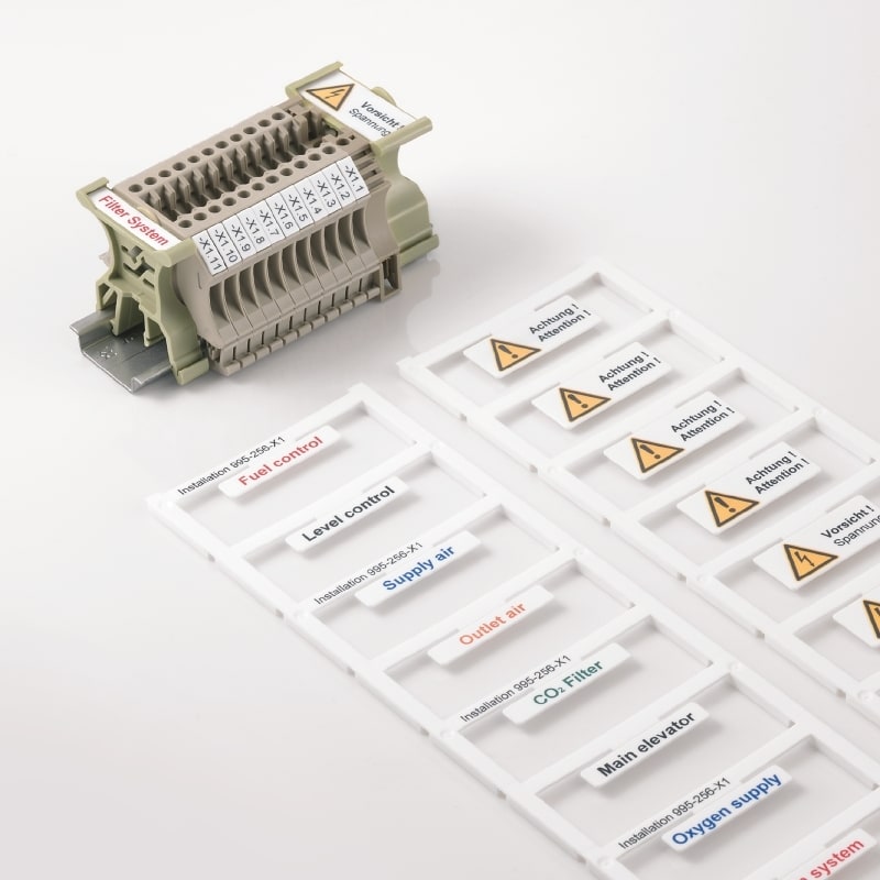 Marcatori privi di alogeni e a ridotto impatto ambientale per linee e cavi. Fissaggio con fascette serracavo.