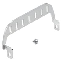Staffa di schermatura per la schermatura innestabile di cavi schermati con passaggio attraverso tubo ondulato o pressacavo multiplo in una custodia a innesto. Attraverso il passaggio metallico, il potenziale viene condotto all\'altezza della custodia. Le fascette di schermatura sono usate per fissare il cavo alla staffa di schermatura.