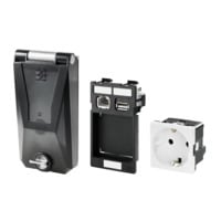 Le custodie portacomponenti in telaio singolo sono dotate di diversi inserti. Una custodia di base e semplice da installare consiste in una piastra inserto con due collegamenti dati e un collegamento di potenza. Presenta quindi una presa per l\'alimentazione o un inserto dati per i servizi di rete. La custodia compatta offre resistenza agli urti e soddisfa i requisiti del grado di protezione IP 65. Le custodie portacomponenti possono essere dotate di elemento di chiusura con chiave.