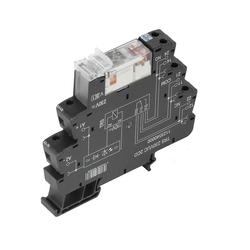 WEIDMULLER - Modulo a relè 24VUC LED verde Raddrizzatore 2 Contatto di scambio 250VAC 8A Collegamento a vite Tasto di prova disponibile TRS 24VUC 2CO.