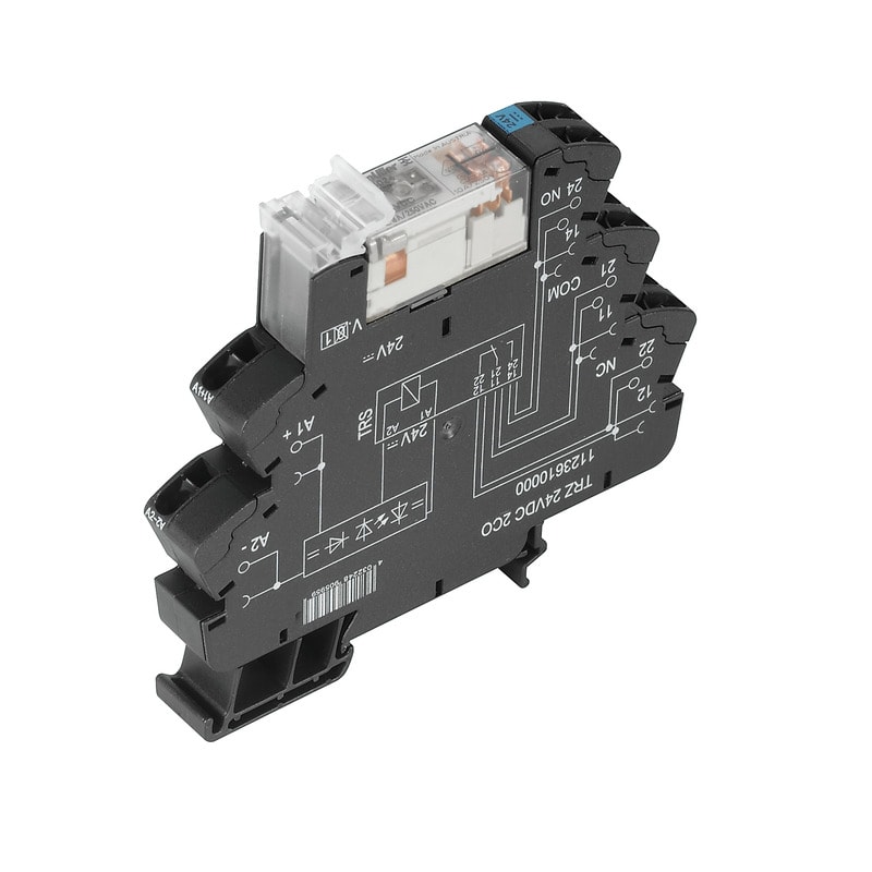 WEIDMULLER - Modulo a relè TRZ 5VDC con LED verde, diodo a corsa libera e protezione contro inversione di polarità, 2 contatti di scambio (AgNi, bagnato in oro) 1123830000