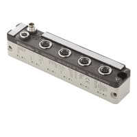 Distributore per il collegamento nel sistema di sensori e attuatori. La robustezza meccanica della custodia incontra gli esigenti requisiti del settore, ed è resistente ad agenti aggressivi, vibrazioni, urti, temperatura, acqua e polvere.