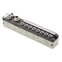 Distributore per il collegamento nel sistema di sensori e attuatori. La robustezza meccanica della custodia incontra gli esigenti requisiti del settore, ed è resistente ad agenti aggressivi, vibrazioni, urti, temperatura, acqua e polvere.