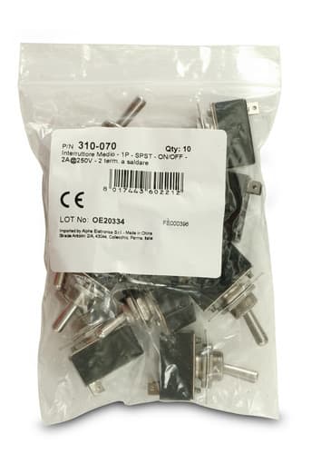 ALPHA ELETTRONICA - Interruttore Medio - 1P - SPST - ON/OFF - 2A@250V - 2 term. a saldare
