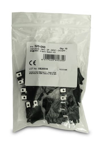 ALPHA ELETTRONICA - Interruttore - Nero - 2P - DPST - ON/OFF - 6A@250V - 4 term. faston 4,8