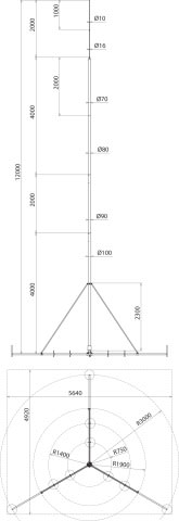 DEHN - Asta di captazione L12000 con set di fissaggio e treppiede ripieghevole R3000mm.