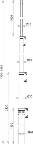 DEHN - Asta di captazione telescopica in alluminio D 40/30/20/10mm, L 1,5-5,2m.