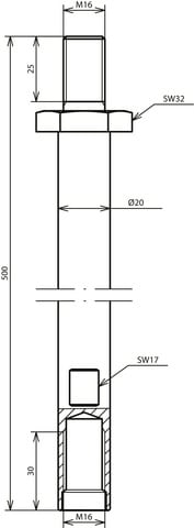 Dispersore di profondità avvitabile Fe/tZn, lunghezza picchetto 500 mm, Ø 20 mm, con filettatura M16 per l’installazione di impianti di messa a terra conficcati, ad es. in caso di terreno roccioso o per applicazioni su tubature. Dispersore e filettatura di collegamento M16 conforme ai requisiti della norma DIN EN 62561-2. Con dispositivo per la sospensione tramite foro trapanato.