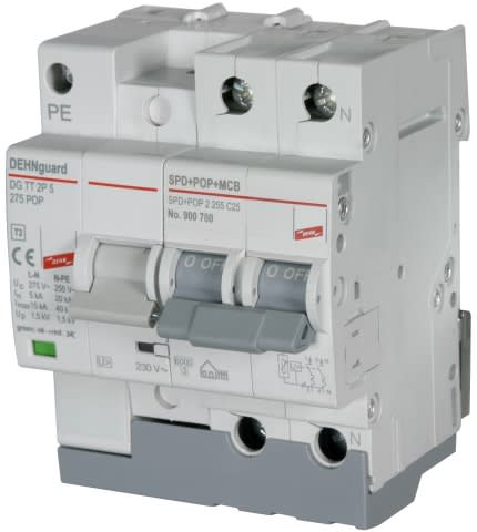 DEHN - Dispositivo di protezione da sovratensioni con interruttori magnetotermici e SPD POP MCB 2 255 C25.