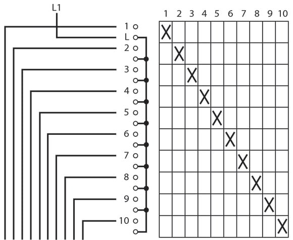 EATON INDUSTRIES - Interruttori a gradini, T0, 20 A, montaggio a incasso, 5 unità costruttive, contatti: 10, 30 gradi, permanente, senza posizione 0, 1-10, numero di proge T0-5-15251/E.