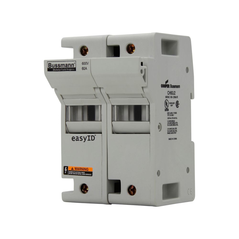 EATON INDUSTRIES - Portafusibile bassa tensione 60A AC/DC 600V 200kA 80x83x125mm J 2P UL CSA guida DIN 35mm CH60J2 Modulear Fuseholder 2 Pole